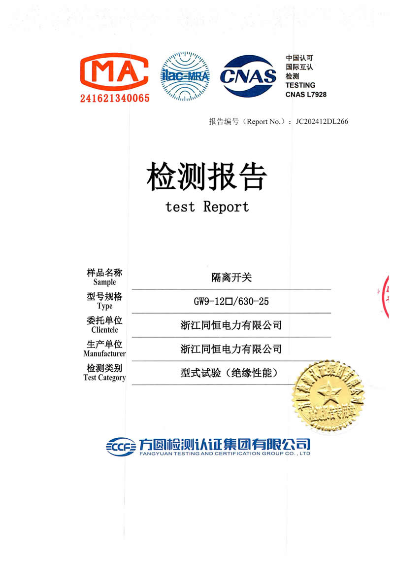 隔離開關(guān)檢測報告